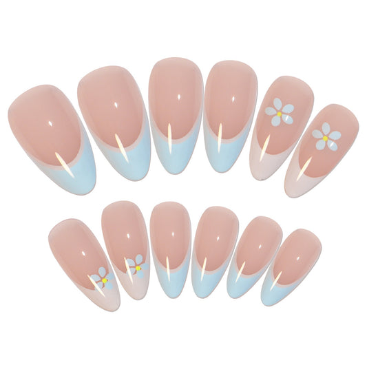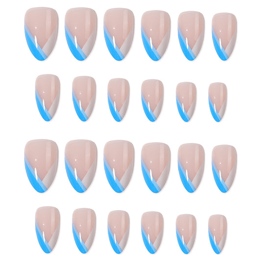 24-Piece Almond Blue French Press-On Nail Set – Chic & Minimalist with Tool Kit