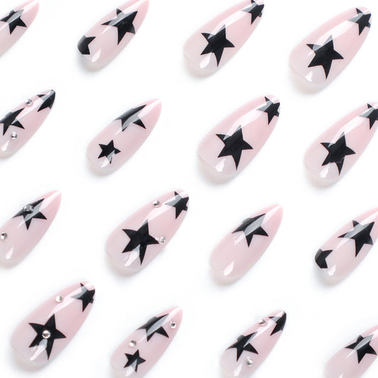 24-Piece Black Star Press-On Nail Set – Includes Application Kit