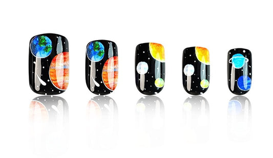 24-Piece Hand-Painted Black Galaxy Press-On Nail Set – Includes Application Tools