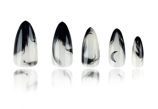 24-Piece Chic Black & White Marble Press-On Nail Set – Unique Artistic Design